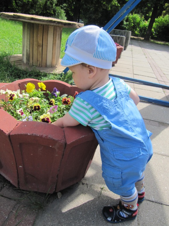 Когда гуляем нужно либо постоянно катить коляску, либо "доставай меня, мама, и давай со мной топ-топ". И мама буквой "Г" топ-топ!)))) ну и спасение минут на 10-15 - это качели! Вот это нам нравится!