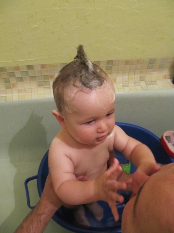 Недавно обрезала кудри своему сыночку, уж очень ему жарко было да и в глаза лезли)))
