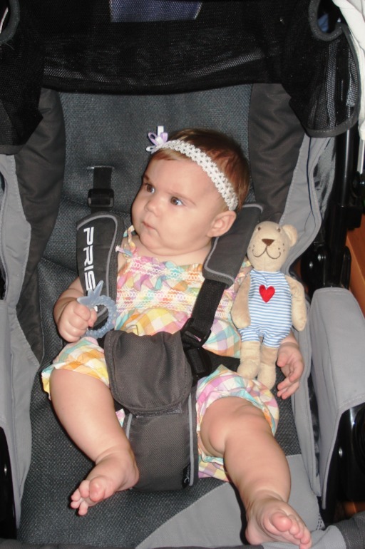 - наконец-то стала играть со своими ножками (но до рта пока тяжеловато дотянуть))
