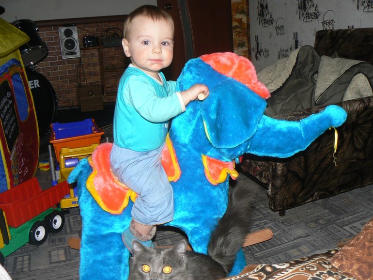 покупали и старшей и младшей ,очень довольна, младшая каталась где-то до 3 лет. Интерес проснулся в год, лошадь была еще и музыкальная ( ржет).