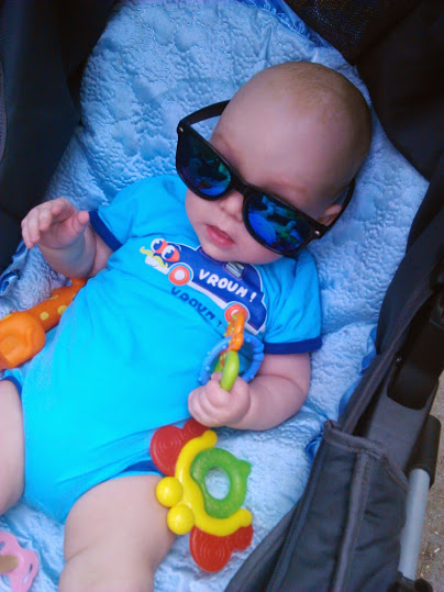 Вот, кстати, о прогулках. Погода у нас стоит холодная, середина лета, а дубак такой на улице порой, что не знаю как одеть Мишку(( Лето, ты где?