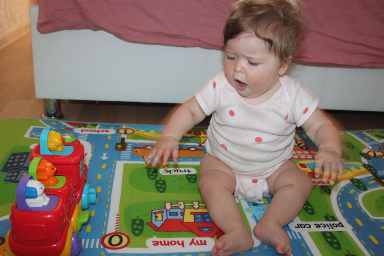 Стала становиться на четвереньки, поздняя у меня девчонка! И когда ставишь уже не так подгибает пальчики. В 8,5 месяцев прошли на дому курс массажа, не могу сказать, что прям после него случился какой то скачок, нет. В любом случае потихоньку растем, развиваемся :)