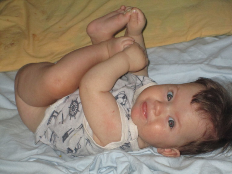 В этом месяце она наконец то нашла свои ножки и теперь это наше любимое занятие))) правда в рот не всегда получается засунуть))