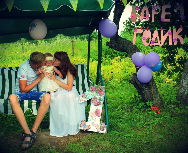Нашей Варварушке годик исполнился 2 августа.(наша десантница)Всё прошло замечательно.Было всего 12 человек,отмечали на природе в шатре.Немного фото: