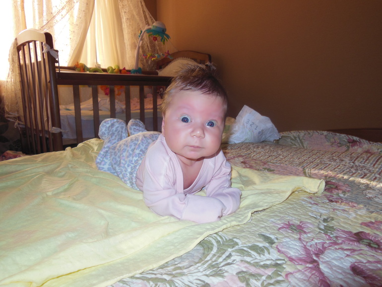 Физическое развитиеНаша Маргарита растёт не по дням, а по часам!!!! Ооочень любит кушать сисю и засыпать на ней!!!!)))))) Любит когда её носят столбиком и в позе лягушки лицом к маме!!!)))))) Эмоционально реагирует на все....на папу с мамой, на игрушки, а вчера вообще на улице гуляли на руках и сколько было впечатлений!!!!!!! Любит слушать когда я рассказываю все и обо всем!!!))))))) На животе любит лежать, потом сама на спину переворачивается! Ой...кажется, что только // было, а вот доча уже нам улыбается!!!!! Любимая игрушка бабочка Софи!)))))))