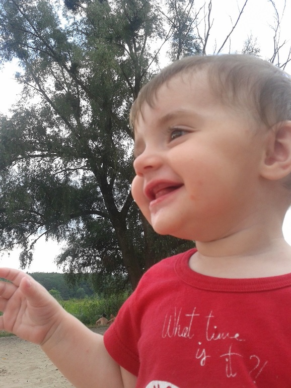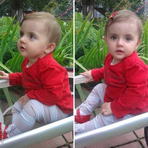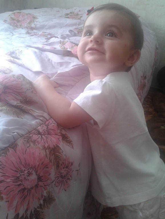 Очаровательная беззубая улыбка! Вы уже заколочки носите — класс!!! А мы всё лысые и лысые (( Поздравляем с Девяточкой!