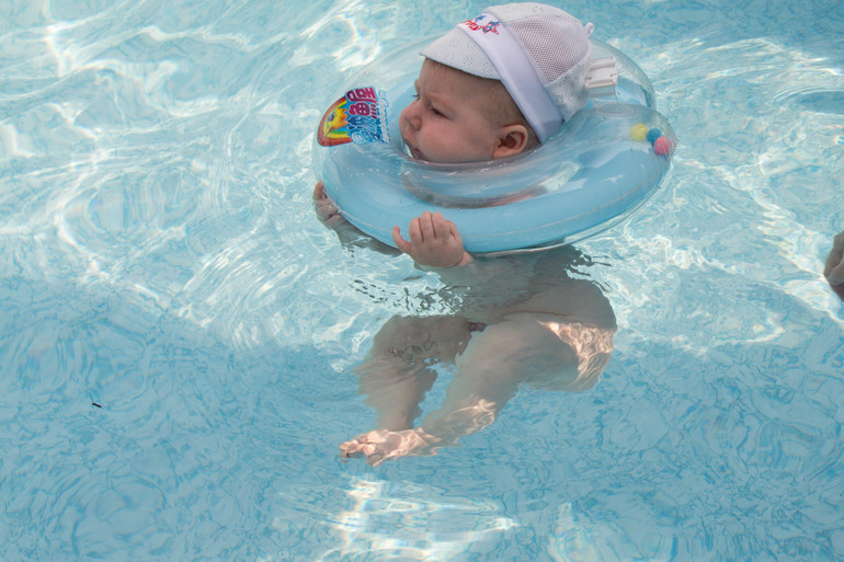Ездим по родителям и там его за уши не вытащишь из бассейна, хотя вода там не выше 27 градусов, он даже не хныкал, когда опускали, купаем дома в 33 градусах обычно)
