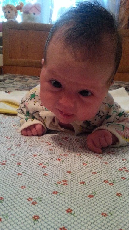 ХвастаемсяЕхууууууу купили мы вчера мою любимку Peg-Perego Book !!!!!Стоит пока упакованная)))))Руки пока не дошли ее распечатать...А сегодня телек взяли наконец то повесим на стенку а старшая дочь не оторвешь ее от экрана боюсь зренее испортит....Ну и младшая Варвара Александровна нас радует каждый день нам уже 1 месяц и 10 дней!Как время летит....Наши умелочки...Переварачиваемся со спины на животик моя лапуличка радует!Лежа на животе держим голову и разглядываем все по сторонам что где твориться....еще пытаемся ползти да так усердно что одну страшно уже остовлять на кровате при этом кряхтим как старая бабка!!!!Думаю рано начнет ползать,старшая не ползала и была скороспелкой села в 4 месяца встала в 6 и пошла сразу в 9 и даже не ползала хотя в год и три начала ползать по квартире)))))Еще мы любим гулить и агукать с игрушками мягкими такие им смешные моськи строим!!!Любим держаться ручками за мамины пальчики и приподниматься...Еще давольная когда ее берут на ручки и носят по квартире она все разглядывает))))Любим засыпать на груди наедимся и причмокивая спим...Сыпь на щечках вернее дажи прыщики у нас пока с роддома не проходят...Да и пупочек наш мы еще обрабатываем хлорегексидином...Колики бывают частенько даю ей Боботик....Ну вот пока и все....14 го нам здавать кровь мочу и к врачу на прививку и взвеситься...Хочеться узнать сколько еще за 2 недельки набрали мы...Весили мы в месяц 5700.