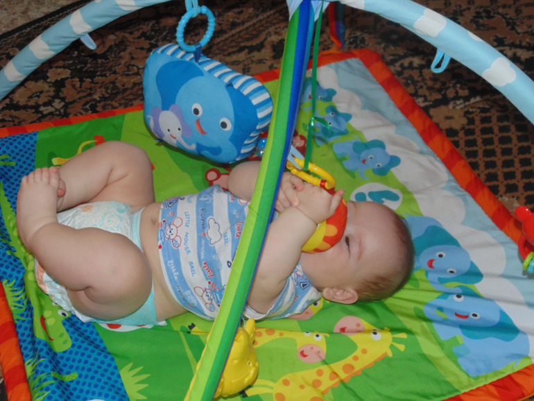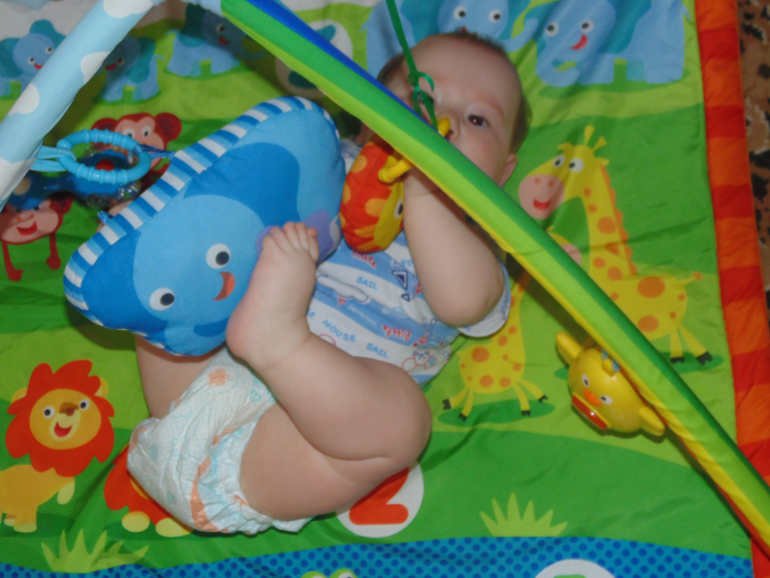 Умелок тоже очень много,пытались ползти,теперь больше не пытаемся,встаем на четвереньки,переворачиваемся во все стороны и пытаемся вставать!!Ползти я так понимаю мы уже не будем...Игрушки держим отлично обеими ручками,пузырек.Очень любит играть,но не долго((Наконец-то понял всю прелесть развивающего коврика.Кстати самая любимая игрушка у нас -это ноги