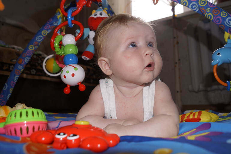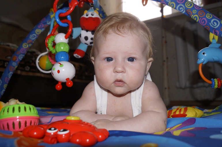 Вес наш 7 кг и рост 64 см. 10 августа в субботу наша мышка сделала серьёзную попытку переворота на животик, но попытка не удалась. Видимо попка тяжеловата. В воскресенье снова попытка... И снова неудачная. Каждый день прошу дочу поскорее перевернуться. Но она видно сама решит, когда для неё это важнее. Попытку засняла на камеру. Как разберусь, так выложу. И ещё.... напоследок.... сегодня увидела, что у Викули прорезался второй зубик!!! Мы счастливые обладатели 2 нижних зубов!!!!!