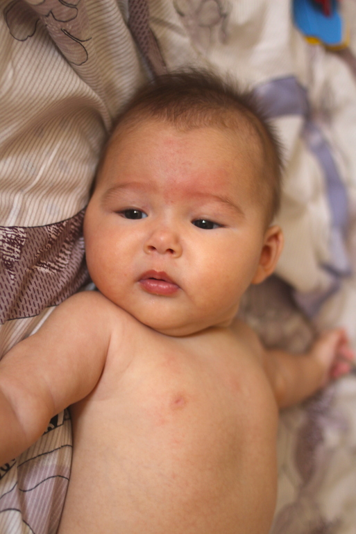 А сегодня с утра выложила ее на коврик, положила рядом новые подаренные родственниками погремухи и занялась своими делами. Пару раз перевернула ее обратно с живота, в третий раз увидела, как переворачивается - и думаю "а ладно, пусть так полежит". Стала отходить от коврика и через несколько шагов услышала такой ПУМ - звук удара чего-то плотного о пластик....и поняла, что сейчас будет ор...Подлетела, схватила ее, а она набирает воздух для пронзительного крика, зажмурив глаза от боли..
