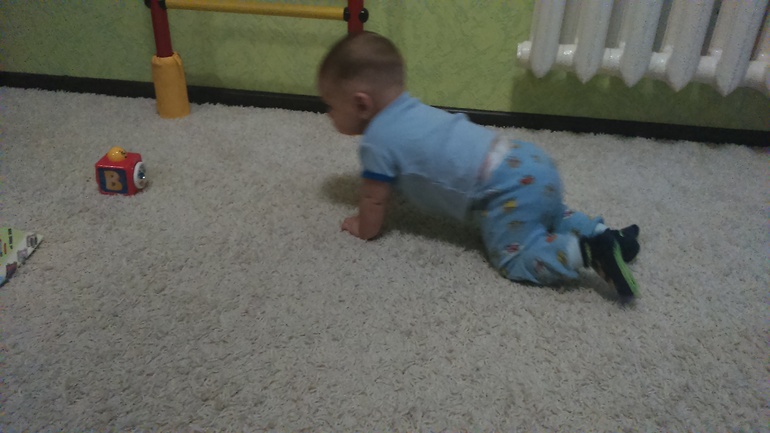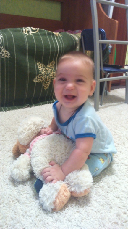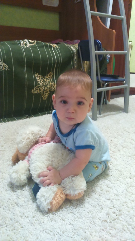 Как то быстро мы стали развиваться после шести мес:-) надо запостить пару фото. Гришаня сел,начал ползать,только не всегда получается правильно,иногда переходим по пластунски, но ползет за игрушкой очень бодро и весело :-) сегодня возвращаются старшие из деревни,где провели лето,вот будут Грише друзья по играм:-)