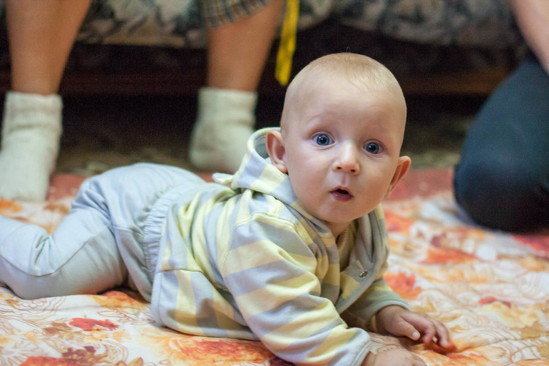После прогулки заехали к бабушкам и дедушкам...Ну и поползали чуть-чуть с дедом на полу