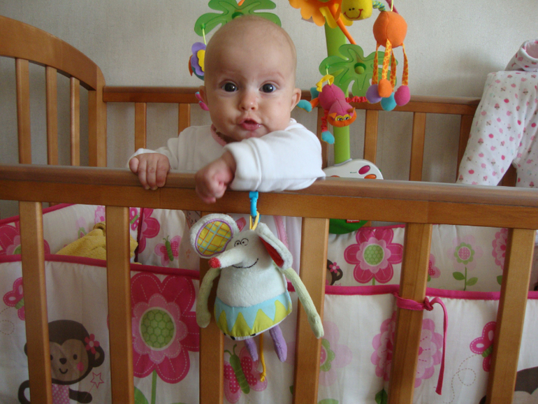 Аксинья умеет ползать на четвереньках и делает это уже довольно шустро,если нужно куда-то добраться))