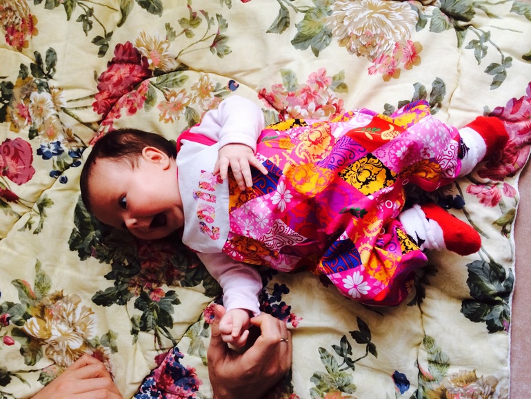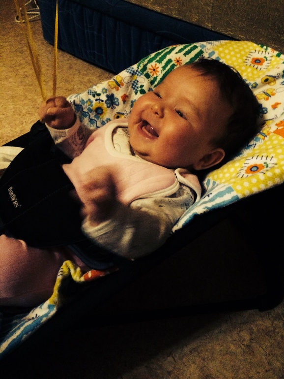 ХвастаемсяВот и нам стукнуло 4месяца!! время-летит!малышка-растет!каждый день меняется и выдает что-то новое! Можно сутками лежать рядом с ней и любоваться...еще б дела сами делались;) Улыбака наша обожает есть свои кулачки как бы мы с этим не боролись! Внизу виднеются уже два зубика и она никак не может их почесать, злится,трясется,слюни водопадом..;))а недавно увидела свои ноги!!!смеялись всем домом! Шевелит пальчиками на ногах и сама вытаращенными глазами их разглядывает,правда ручками их еще не хватает. Очень хитрый жук знает как надо быстро нас разбудить или позвать и хоть мы и знаем все ее уловки-все равно на них всегда попадаемся!;)) ненавидит оставаться одна,хоть на пять минут,поэтому приходится всегда ее приспосабливать рядом! Папуля наконец то нам подарил шезлонг о котором так долго мечтала мама;) и он оказался очень удобным и практичным,надеюсь,он про служит долго. На улице похолодало и мы похоже малясь простыли, сопли, подкашливает,капризничает.. Да и я сама чувствую себя не айс, но мы боремся как можем и стараемся ловить позитив!;)) собираться на улицу стало просто испытанием! Как же все дети ненавидят одеваться!с меня самой 10 потов сойдет,пока на улицу выйду,скорее поэтому и простыла. Папка наш из-за своих командировок появляется очень редко,но когда он дома-этих двоих просто не разлучить!! Они вообще больше никого не замечают,а если вдруг доченька заплачет-папа несется к ней накинув свой плащ супермена и мигом ее успокаивает! Теща и свекровь даже обижаются на него иногда,что он забирает у них ребенка и предпочитает успокоить ее сам...;)