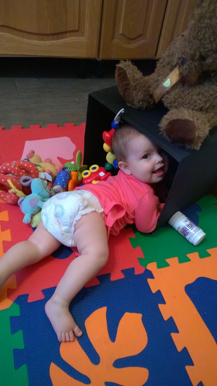 ХвастаемсяНаконец то!!!Наша Шуня сегодня ( 07. 10. 14) первый раз стала подниматься на четвереньки! да так высоко, не шатается особо...)))) весь вечер провела за этим ) Очень шустро гоняет за котом, но по-пластунски) Так же сегодня увидела фотографию своей прабабушки и выдала "бабаба"