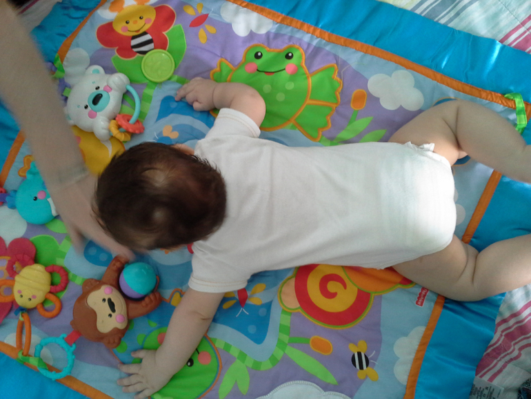 На животе мы лежим плохо. Какие тока коврики ему не давай