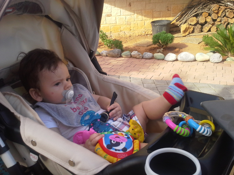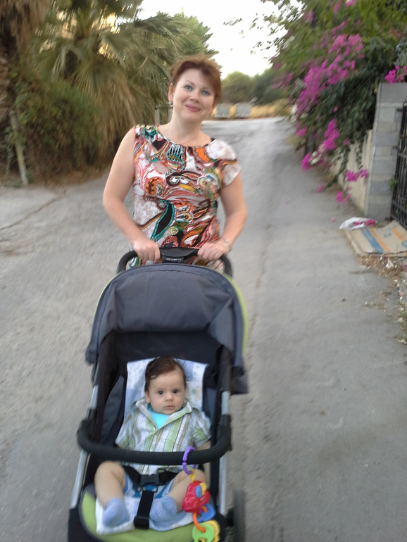 Он обожает новые места, людей, цвета вокруг. По этому очень любопытно все разглядывал и весело агукал. Ну и конечно спал в коляске! Мы выбирали время специально, чтобы хоть пол прогулки в город он спал.