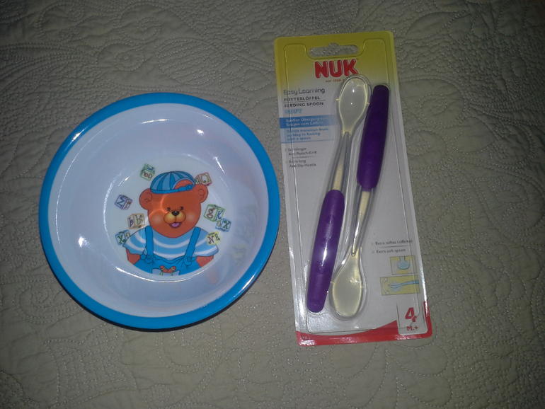 По этому поводу приобрели силиконовые ложечки и тарелочку.