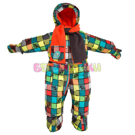 Красивый, очень теплый, ткань с тефлоновым покрытием и не промокает. Мы проносили один размер (82) два года - первый год, пока дочь еще не ходила, с пинетками, потом на след зиму отстегнули их, хватило до весны. Идет в комплекте с шарфом и манишкой, в этом году будем покупать толькл его.