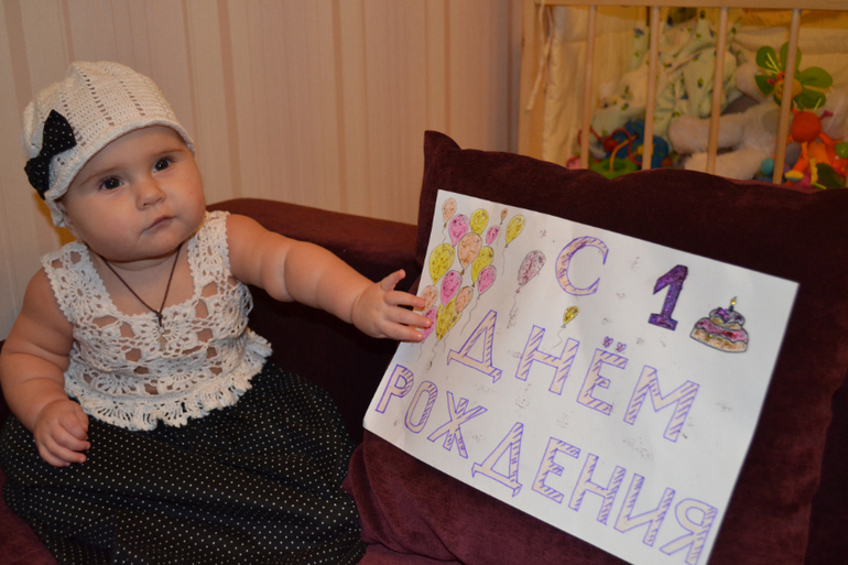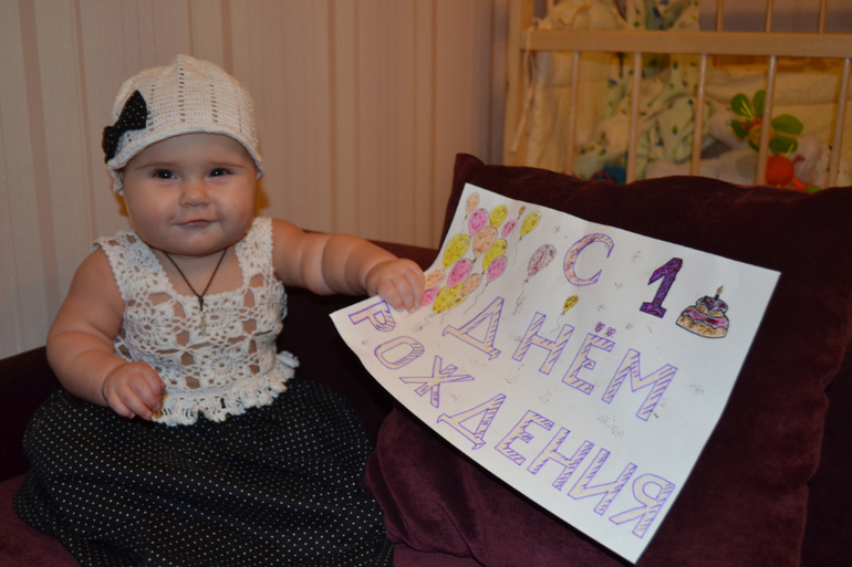 Вчера исполнился годик моей племяннице и Настиной двоюродной сестричке Александре, как мы ее поздравили, увидите ниже, а в выходные они приедут к нам в гости и будем отмечать, фотки обязательно выложу.
