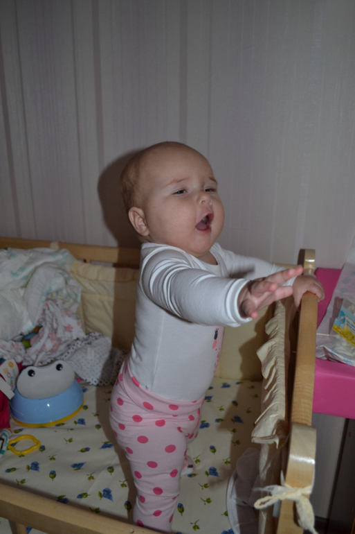 Стоять мы умели давно, я не ставила, боялась, только 1 раз (в 5 мес) провела эксперимент и обнаружила, что стоит она уверенно больше минуты (потом я уже не выдержала и взяла а руки, хотя она была готова стоять еще и еще). Потом она стала вставать сама с опорой и сейчас я уже ставлю ее ненадолго, если она этого просит. А Настя это дело очень любит, аж открывает рот от удовольствия и смотрит на меня такииими счастливыми глазенками!!! Ходит еще очень неуверенно за две ручки, но зато правильно - наступает на всю стопу, за чем я внимательно слежу.