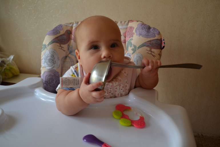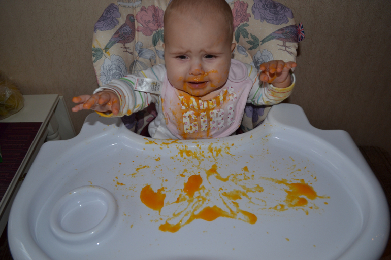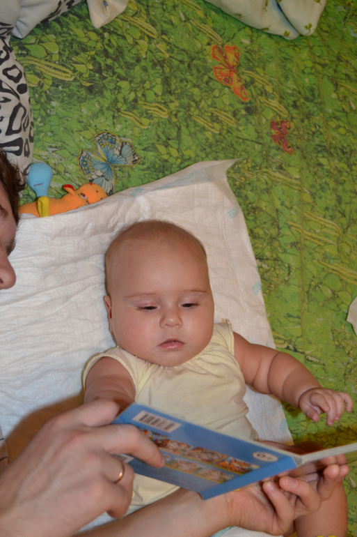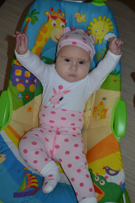 Режим у нас следующий: просыпаемся в 11:00, днем спим по желанию, чаще всего через 2-3 часа, засыпаем в ночь в 23:00. Самые проблемные у нас ночи, потому что спим мы вместе, в обнимку, просыпается рез 5-7 за ночь пососать сиську, из них раза 3 поесть (перекидываю ее в ночи через себя на другую сиську). Но если я ухожу, например, посмотреть фильм, то Настя просыпается раз в 5-40 мин, требуя меня к себя с с закрытыми глазами, пососет сиську, успокоится и, поняв, что я рядом, заснет. 2 раза просыпалась ночью (в 1 час и в 4 часа), смотрела на меня своими бусинками, высовывала кончик язычка в улыбке и сообщала мне, что она, вообще-то, проснулась, полна сил и хочет играть… Ужас))) Едим пока только во второе кормление овощи (кабачок, цветная капуста, тыква, морковка как однокомпонентные, так и многокомпонентные - сейчас чаще,пробовали несколько ложек картошки, но пока давать не рискую, крахмал тяжело переваривается детьми), все остальное время сиську. Сейчас буду вводить фрукты.