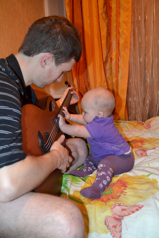 Очень любит активничать (особенно по вечерам) со мной или с мужем, когда мы валяемся на диване, а она ползает по нам, набрасывается, встает, перелезает, падает, снова карабкается - и тогда я начинаю искать пропеллер или шило в районе памперса)))) Пока не нашла)