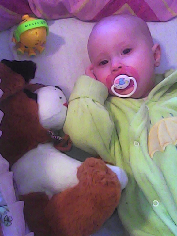 Врач сказала развиваемся норм. Остался открытым вопрос с неврологом по поводу подгибания пальчиков на ножках. Как нибудь обяз. попадём к нему. Заглянула на зубы, говорит 2 нижних на подходе уже. Будем ждать. Уже куплен Дентол беби.