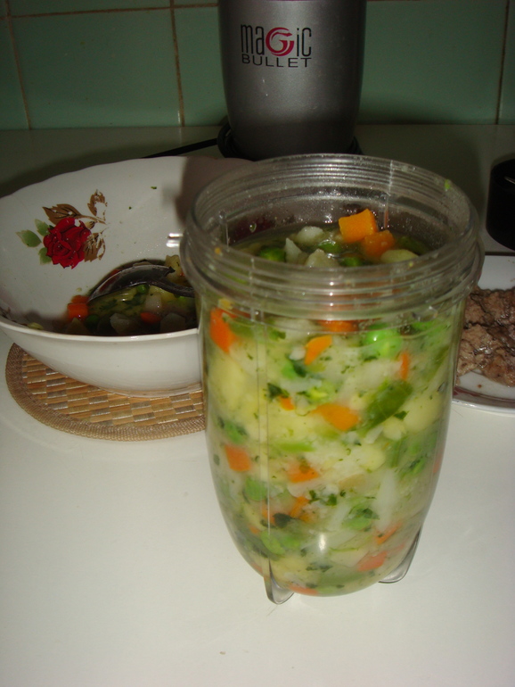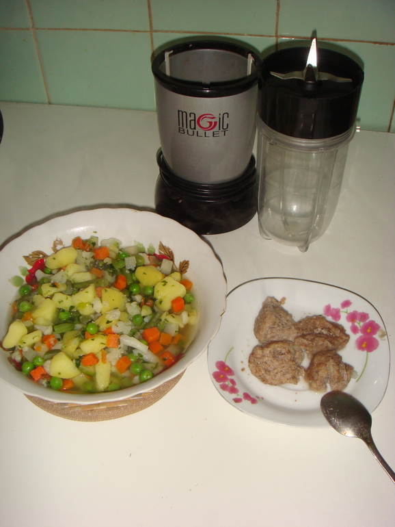 мясо готовим на пару и измельчаем, с овощей бульон не сливаем)