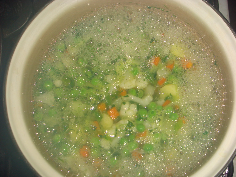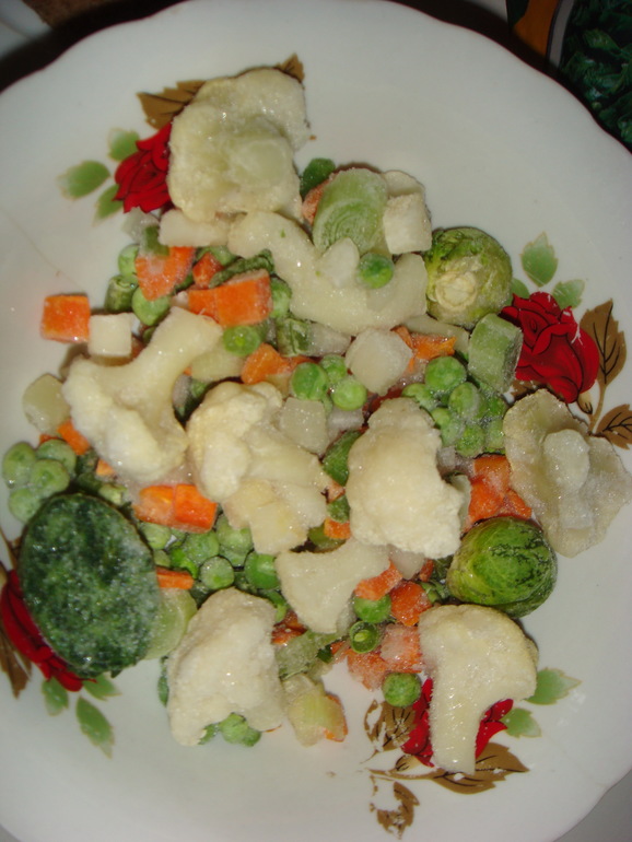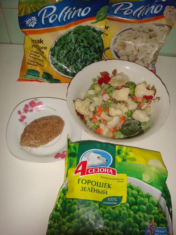 Готовлю смесь замороженную и мяско) горошек, морковь, лук-порей и свежий репчатый, капуста цветная и брюссельская, шпинат, стручковая фасоль+свежий картофель