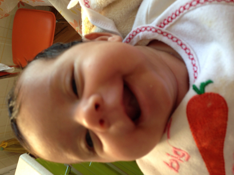 Она так улыбается сладко сладко, да не всегда конечно же и не скажу, что она прям даже любит, она неженка у меня, как фоткаю сразу такое личико делает влюбляюсь в нее каждый божий день!!! На днях муж обнаружили что ей ой как нравится наблюдать как лопает он жвачные пузыри, не то чтоб он целый день жует и лопает, просто как-то она плакала, он из маленькой жвачки надул маленький пузырь во рту как бы ее отвлечь, и что вы думаете, она не только затихла так еще и улыбается так)) плюс один способ ко мне в копилку"как успокоить младенца"