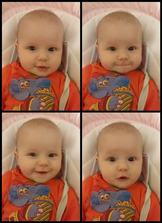 Хотела все спросить.....у вас тоже такие гримасы делают? только тел в руки и говорю Настюша фото..всёёёёё начинает гримасничать..!!! это прям чудеса какие то! Подруга говорит Настя какая то мимичная-юмористичная что-ли...