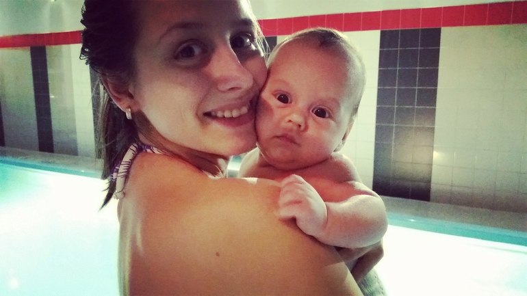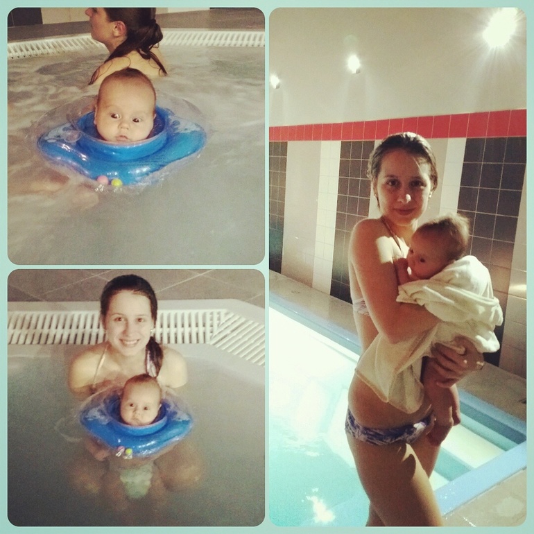 9. Ходили недавно в Баню, на минутку его занесла в парилку; в хаммаме 3 минуты были, а все остальное время плавали в джакузи с девочками))) Итого: 4 часа спокойствия и 1 раз захныкал в конце..устал)