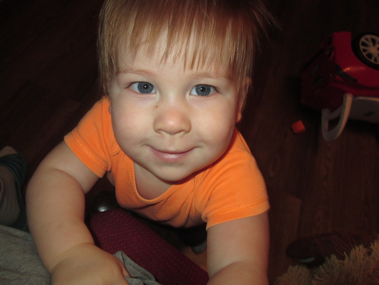 Обожает играть в догонялки со мной и в ку-ку. Сам начинает игру. Освоил принцип рисования. Знает, что по чему елозить надо, чтоб получились каляки-маляки)) особенно любит разрисовать себе пятки-ладошки-мордашку и маму, куда ж без этого.