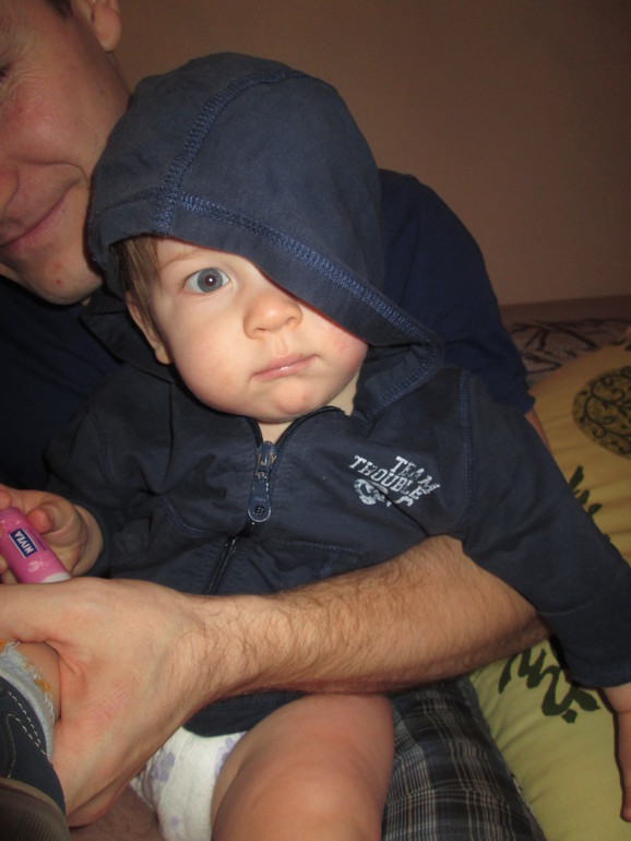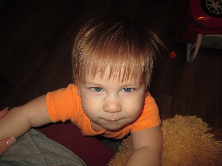 Еда: всё еще на ГВ, но уже гораздо меньше, просто привычка и антидепрессант. Кушает практически все (в пределах разумного). Сам отказался от пюрех, только взрослую признает. Любит творожки Тема и печенье, молоко. Ну, мясо, конечно, говядинку особенно. И новая страсть - молочный белый батон (странный выбор, как по мне, я хлеба вообще не ем), но, как говорилось, мужчина растет.