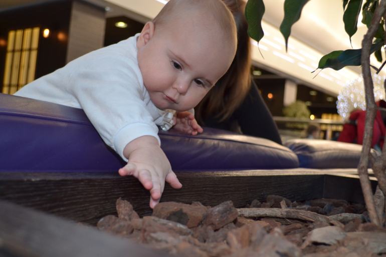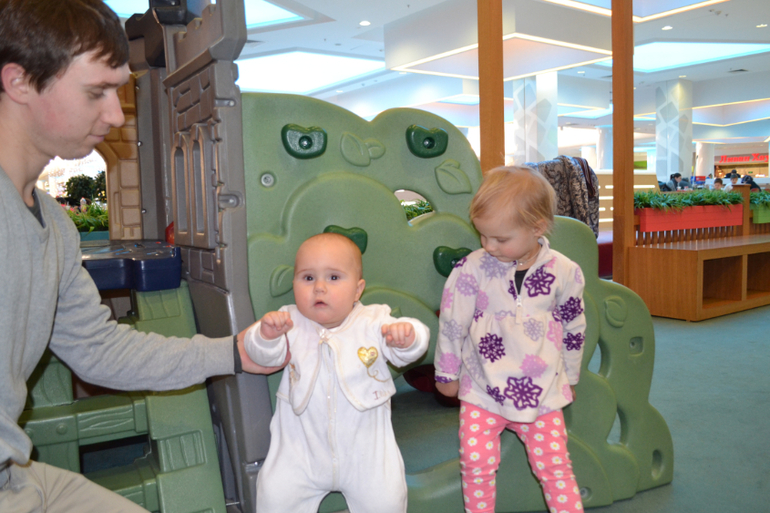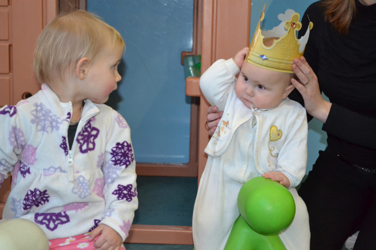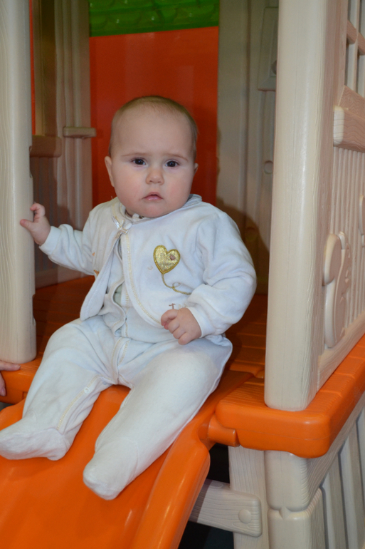 Ходили гулять с Настенькой в наш ТЦ Калейдоскоп на площадку, Насте очень понравилось! Я давно заметила, что она прям жаждет общения, так радуется и тянется к деткам!) Мальчик там наградил ее короной, т.ч. наша принцесса не была обделена мужским вниманием!!!)))