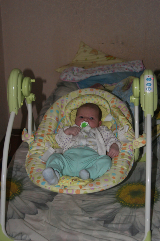 сын оценил прелесть качельки не сразу.. до 3 меясцев он в нем мало сидел..