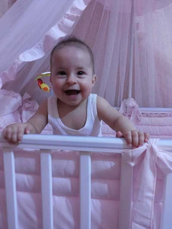 .В 6 месяцев и 1 неделю она научилась хорошо сидеть и подолгу играть сидя на полу.В 6 и 2 недели начала ползать как положено,а не на животе.Теперь лезет в каждый угол.Через пару дней Лерочка наконец поняла как можно сесть из положения ползания на попу.В 6 и 3 недели встала сама в кроватке держать за бортики.Теперь покоряет другие предметы(диван,стул,коляска),вообще стоим везде где только можно.Старается стоять без поддержки,но падает на пол,плачет и сново встает.Упертая моя девочка.Теперь за ней только и следи.