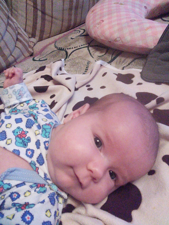 И вообще из кабачка Лесюша превращается прям в человеческого человека. Она научилась улыбаться осознанно, особенно, когда ей улыбаются ( правда когда понимает, что взрослые могут лыбиться бесконечно, перестаёт улыбаться, ибо всего должно быть в меру). Научилась следить взглядом за людьми в комнате и разговаривать с ними( при этом как истинная русская может одним Агу выразить и радость и дикое горе). Знает уже несколько слогов: агу, гы, кр, ой, гу и тому подобные. Общается вообще охотно: с папой и бабушкой, а сейчас и с другой бабушкой.