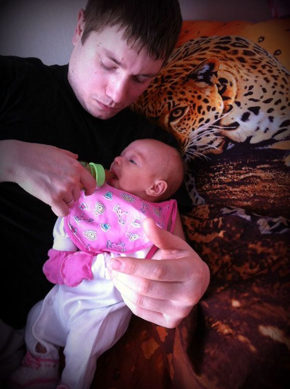 Об Ариночке: Моя принцесса, зайка наша! Любим её до невозможности, не представляю кого так сильно ещё можно любить, как не свою крошечку! Она такая прикольная, милая, красивая и вкусно пахнущая! В обще она у нас очень умная девочка, я тут приболела на днях, была не какая, так Ариша даже не плакала за день не разу, и улыбалась почаще! Чувствовала что плохо маме! А с папой у них особая связь какая-то, ну прям не могу на них насмотреться, стоит ему взять её на руки, так всё, мы молчим, и о чём-то можем даже разговаривать!