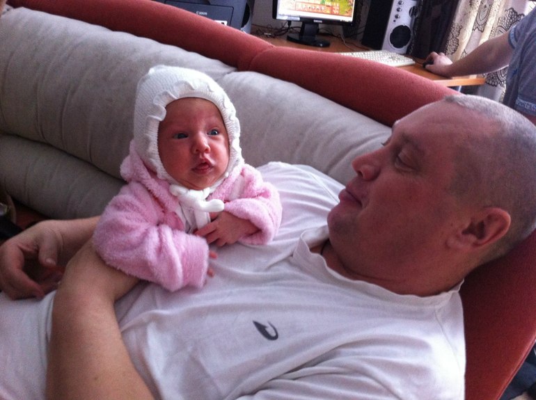 С дедой Васей, это мой папа!:) Дедушка души не чает во внучке, говорит-"Вылетая Ленка маленькая!":)