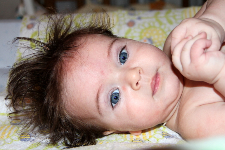 Круглолицый малыш в чепчике. Совсем другая физиономия.