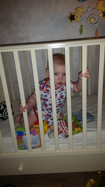 Точнее понял как это делать. 7 мес 27 дней .Проползает немного и пытается встать, если рядом нет опоры очень расстраивается, тк стоять ему нравится гораздо больше чем ползти, уже даже одной рукой держится.