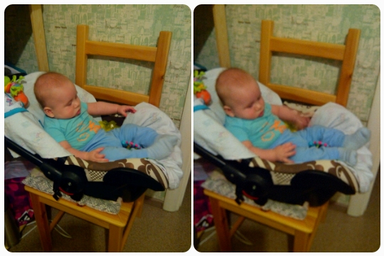 Игры, кстати, становятся все осознаннее, у нас есть игрушка Гусеница Tiny Love (на верхней фотке висит на дуге автолюльки), которая при растягивании пять скукоживается и звенит, ее теперь очень любит Платон! Сам растягивает! Я так удивилась, что он вообще до нее достает))) Но он тянется не для того, чтобы затащить ее в рот, а чтобы отпустить и услышать звон!!