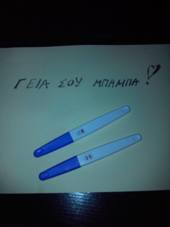 вот так я эту новость преподнесла мужу (написано:привет папа!)положила на стол у входа и пошла делать свои дела,заходя домой с работы увидел сразу;)радoсти нашей небыло предела!