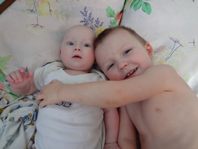 Мне повезло, что у сына нет ревности к сестренке, вот только когда спрашиваю "Любишь Машу?" отвечает "Неет", но целует, играет и спит с ней)))
