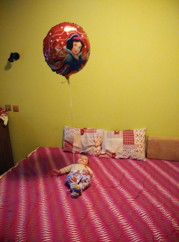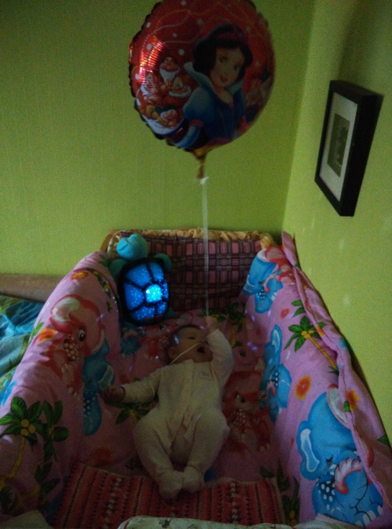 ИгрыОдна любимая ББшка посоветовала шарик надутый гелием. Мы купили яркий, большой. Нике он сразу понравился. Мы привязываем ей за ручки или за ножки. Сначала она просто смотрела на него как завороженная. Потом определила, что если дрыгаться то он двигается. Сейчас уже поняла, как его притянуть к себе. И визжит, и пищит, и нежно ему что то воркует))фото под кат