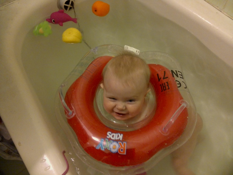 С двух месяцев перешли в большую,затем купили круг,все таки долго без него не накупаешься,тяжело спине. 20 минут с кругом и сколько сможем на руках.Дочка не высокая,поэтому мы купались в нем до 6 месяцев в круге,правда,последний месяц научилась вытаскивать подбородок вниз и пить воду,или отталкиваться и запрокидывать голову,поэтому круг всегда держали. 2 круга износили.Неделю купала одна,тогда пришлось приноровиться .Варю на животик,на стул или стир.машинку ,чтобы голова в воздухе и быстро нацепляла.