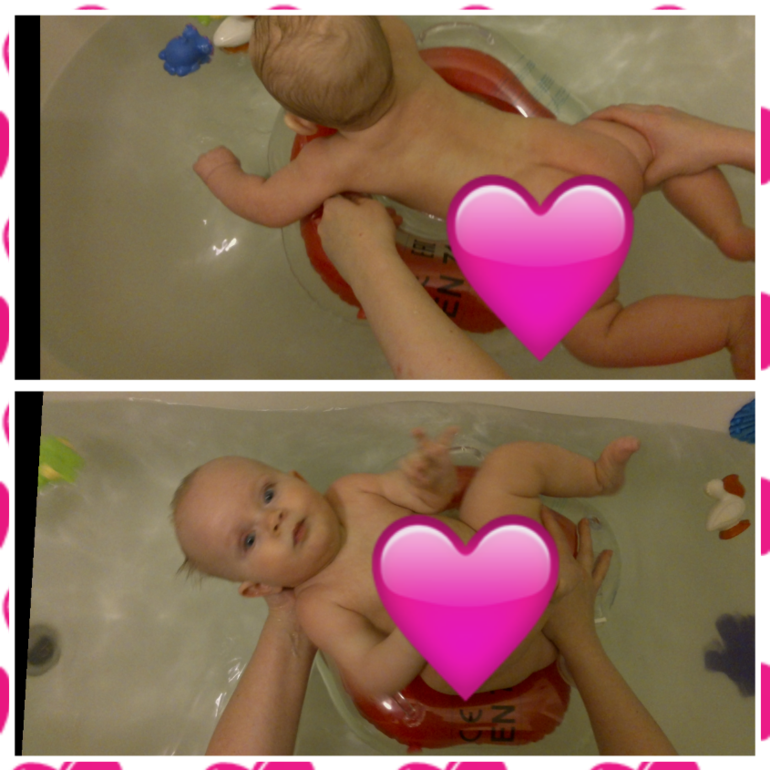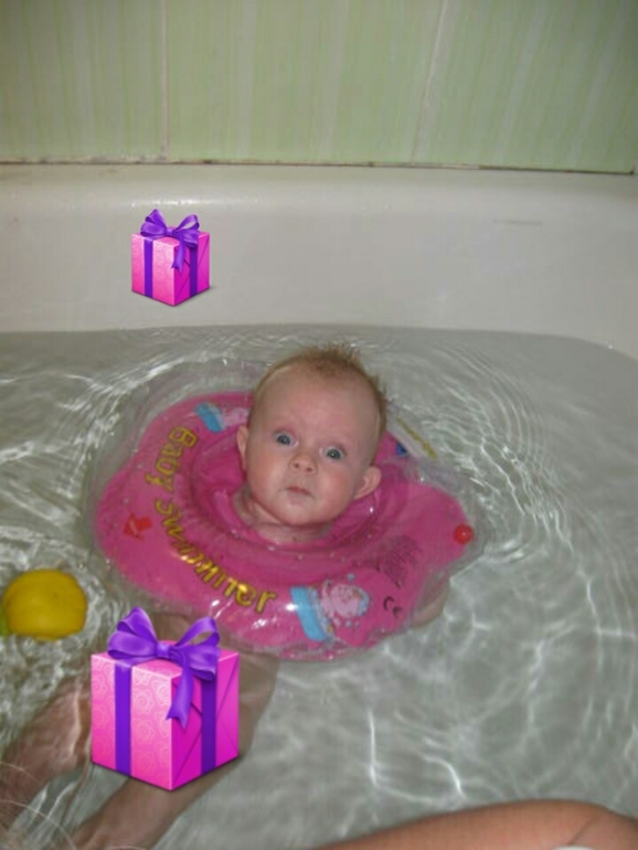 Наливали воду,плавали на руках,потом на кругу и начинали спускать воду,когда ее оставалось чуть-чуть ,отпускали Варю побарахтаться.Иногда она причмокивала воду,тогда соску давала ей,но в основном ей было интересно и не до этого.